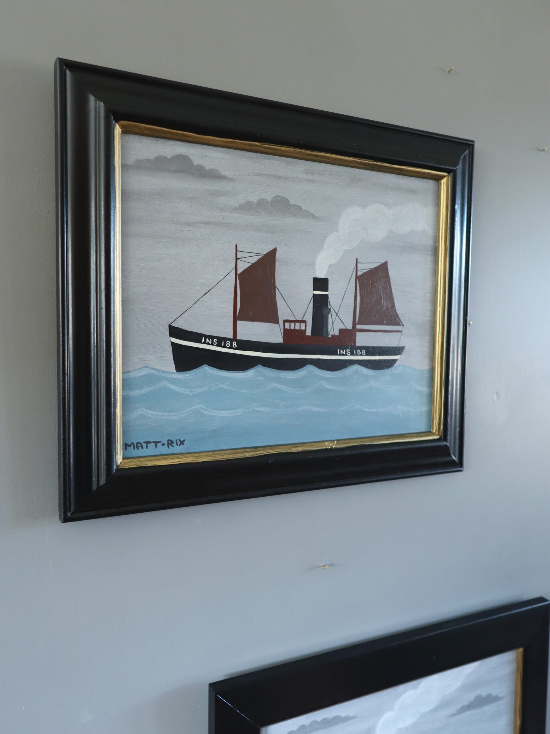 This oil on board is is housed in a complementary gilt frame. Both the painting and frame are in excellent vintage condition.