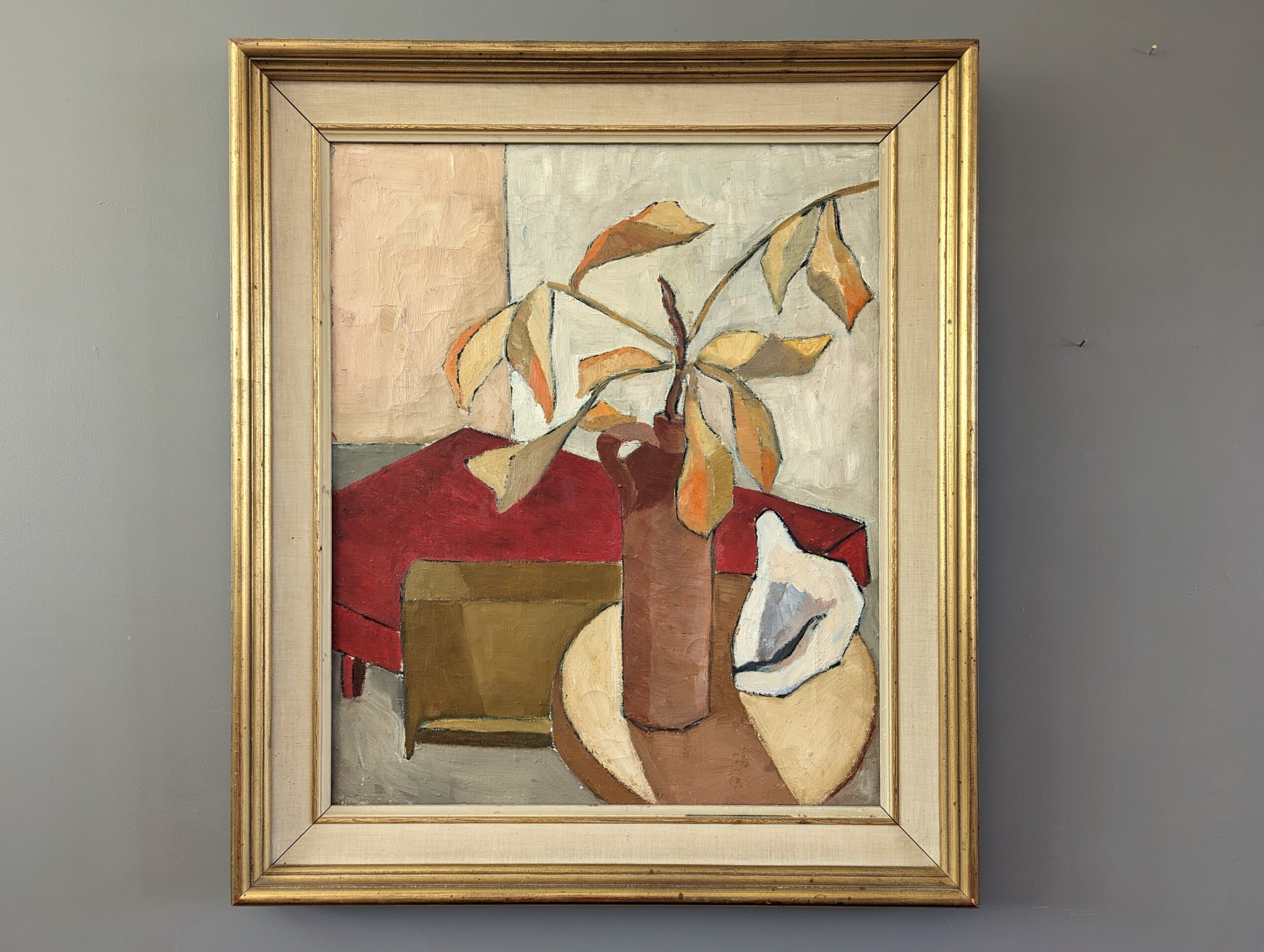 A well balanced mid century modernist still life composition in oil, painted onto canvas.