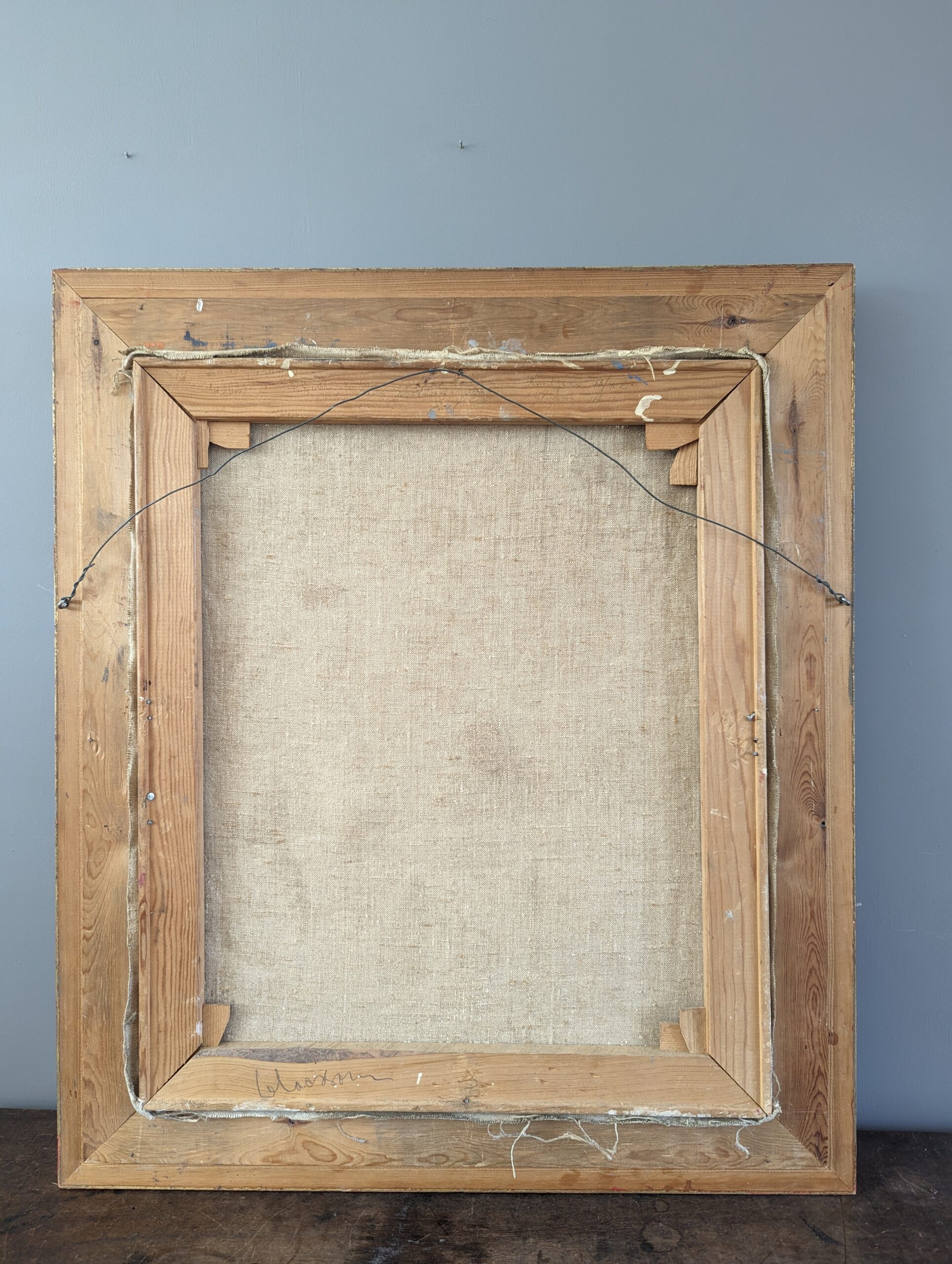 The painting is housed in a well suited gilt frame with and inner linen lined border. The painting has some scattered craquelure, mainly to the upper left side, as shown in close ups. The frame has some minor marks but is in good condition overall.