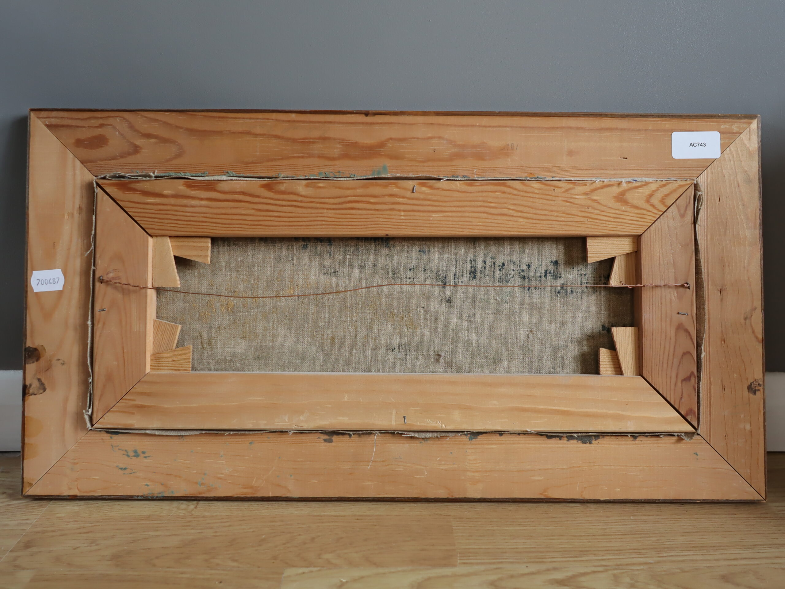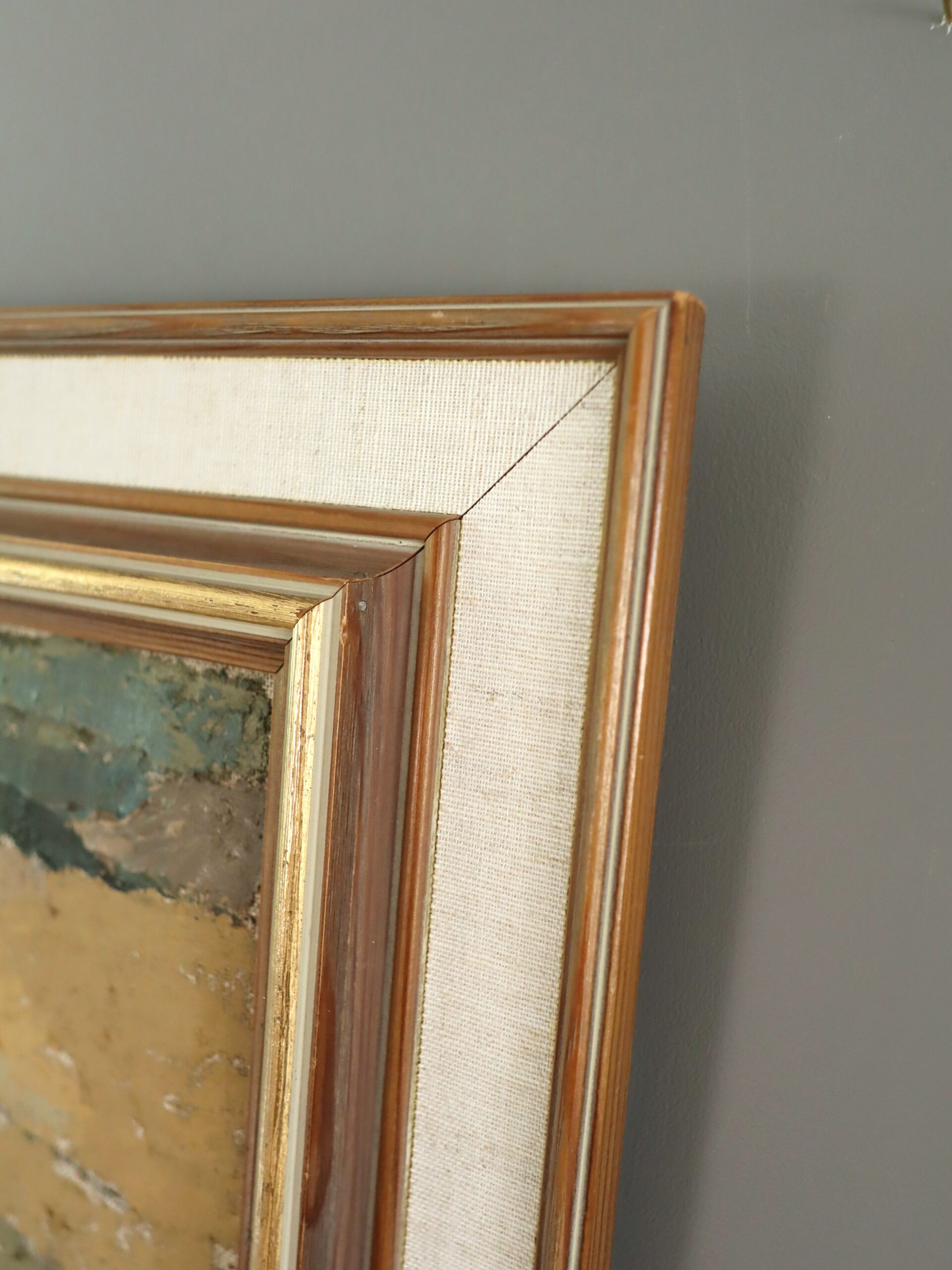 This oil on canvas is housed in a refined and well-suited frame with gilt mouldings and an inner linen window. Both the painting and frame are in excellent vintage condition.