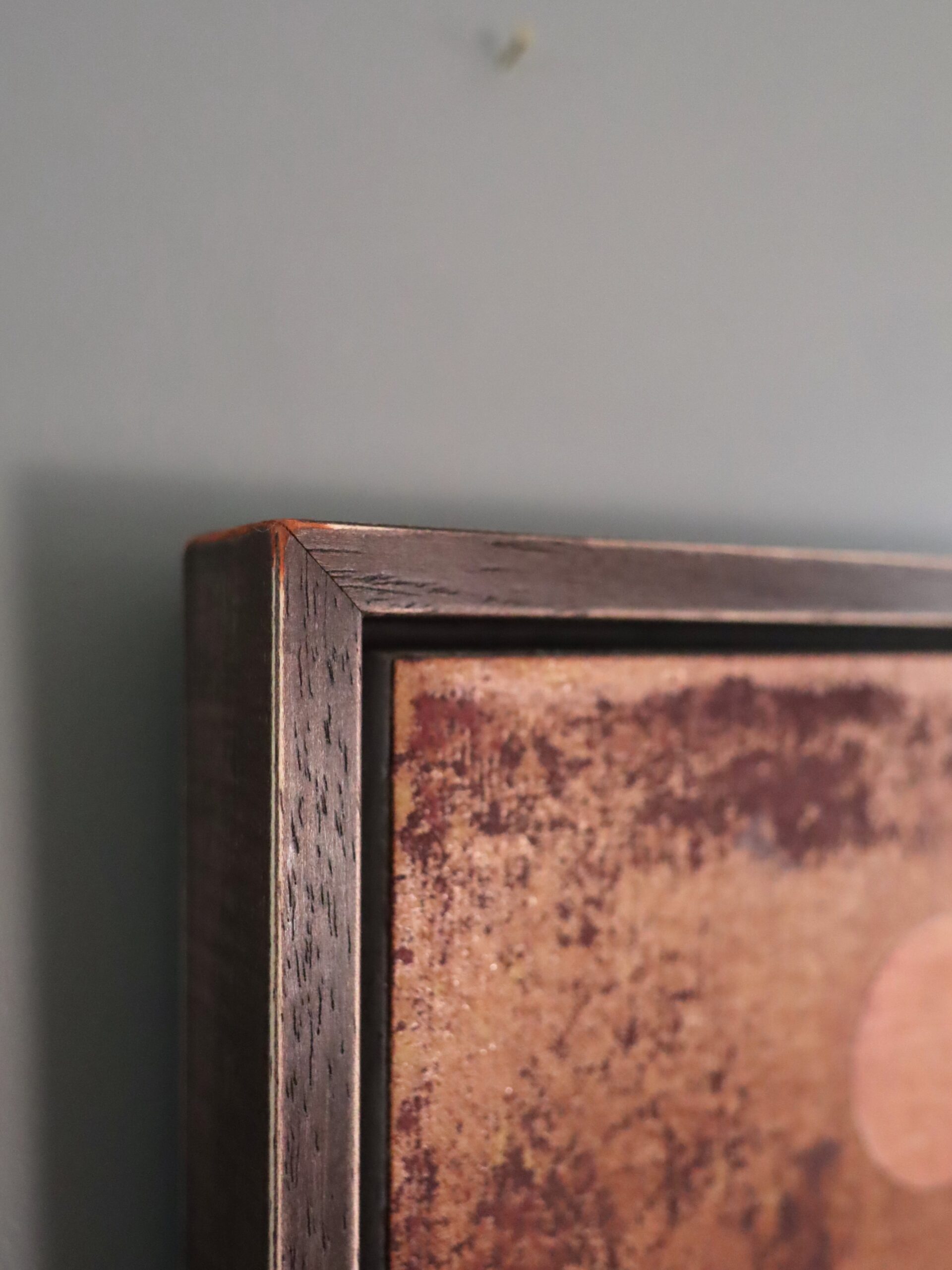 The artwork is presented in wood frame that suits it very well. It has been constructed with professional grade adhesive and is shipped with robust fixings, ready to hang, Both artwork and frame are in excellent condition.