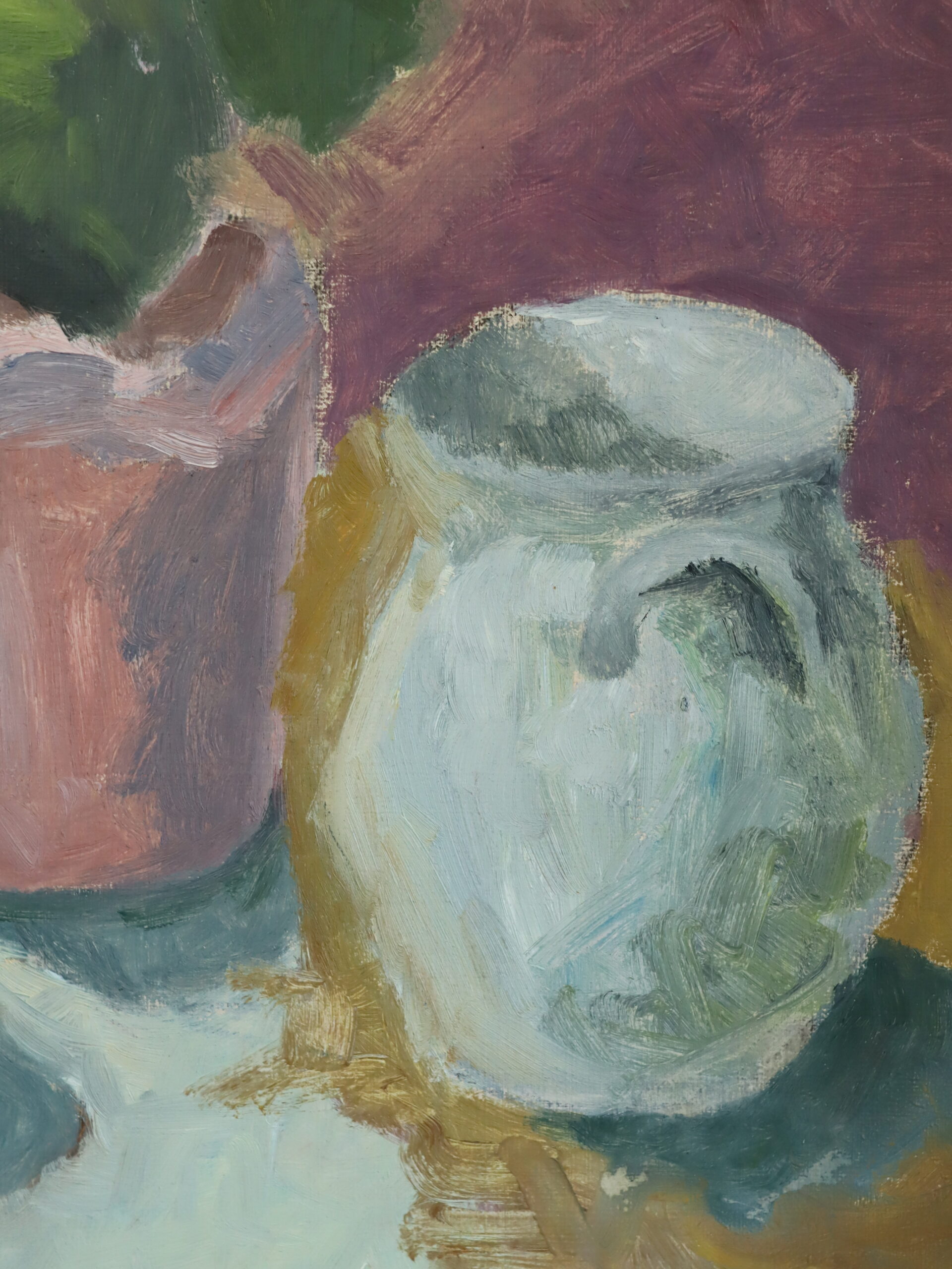 A delicate and elegant mid-century interior still life composition, painted in oil onto board.