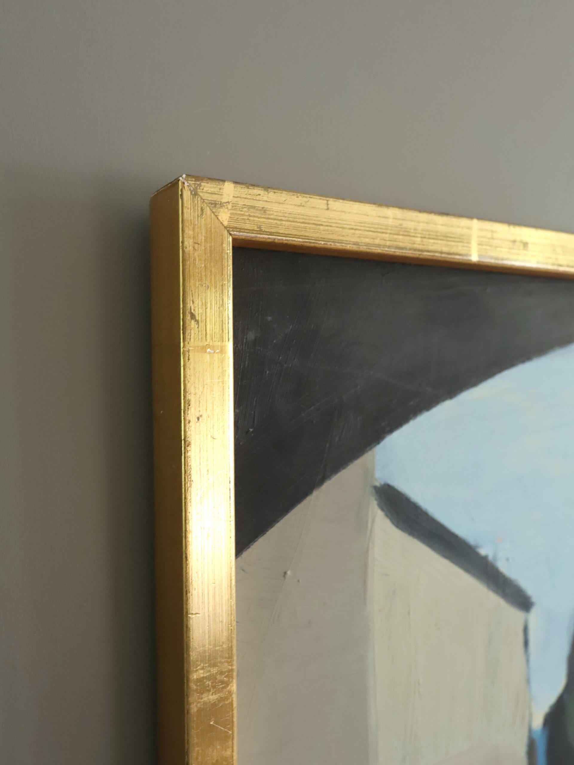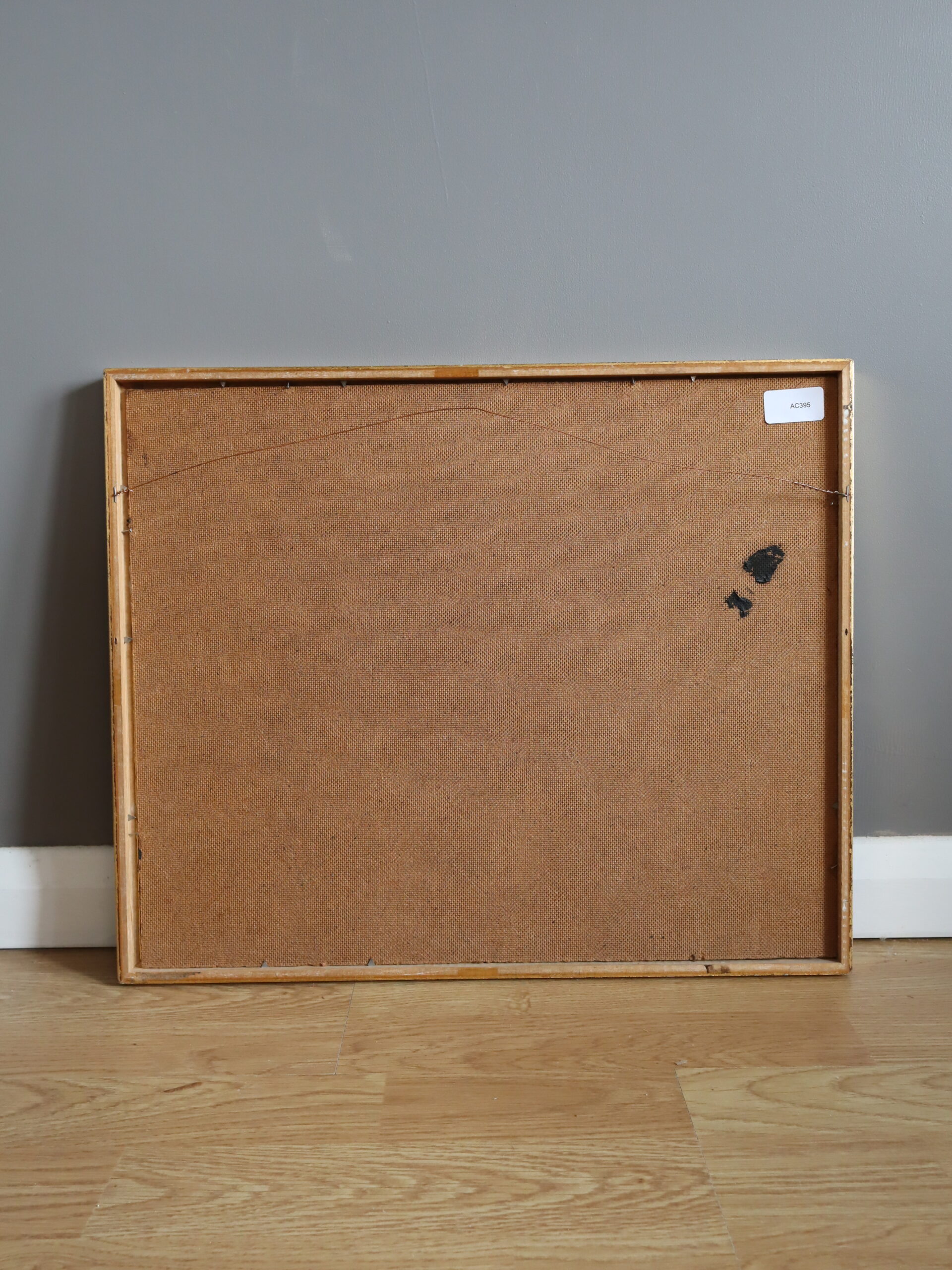 This oil on board is housed in a complementary gilt frame. The painting is in excellent vintage condition. The frame has some scuffs at its corners.