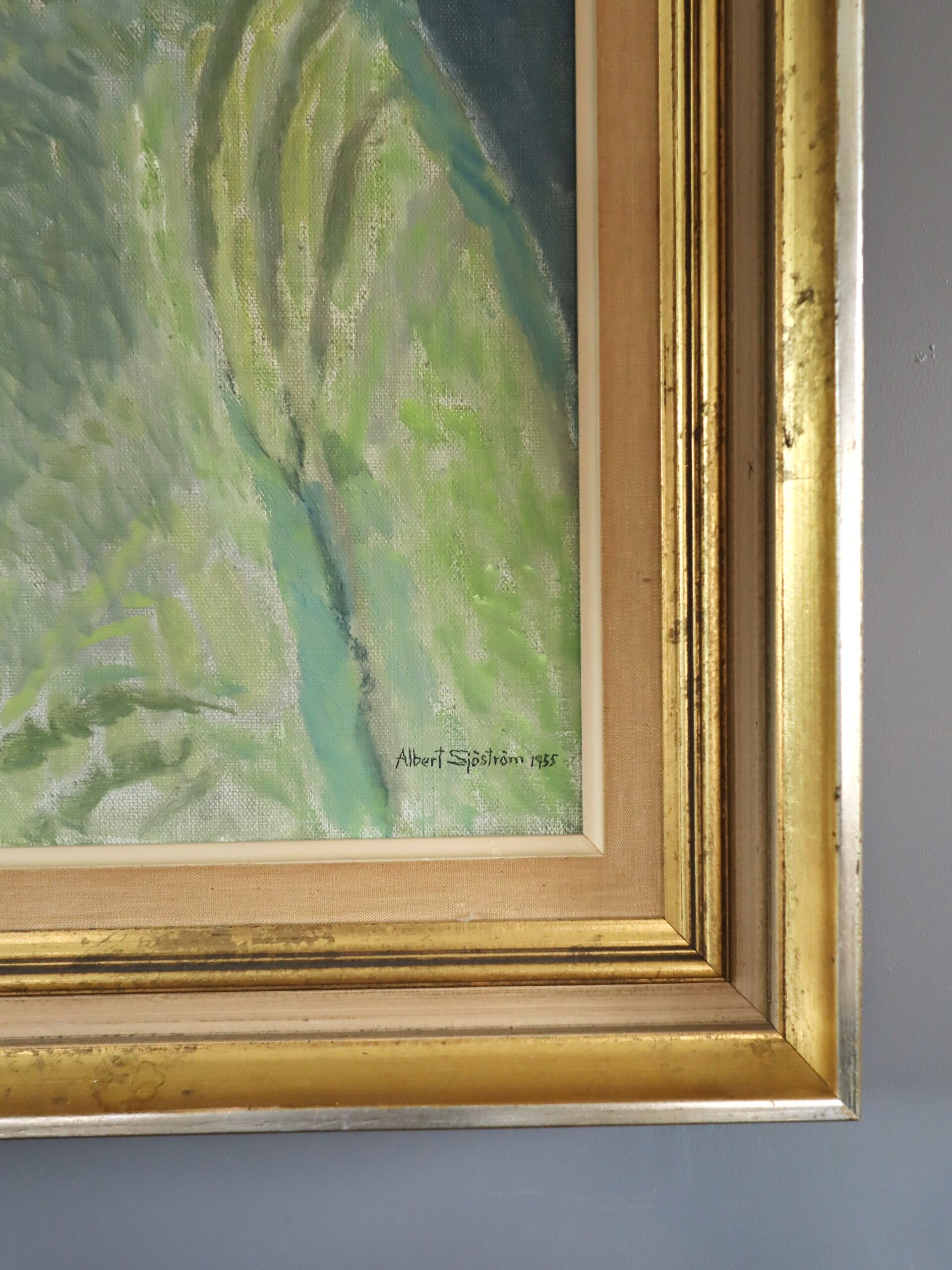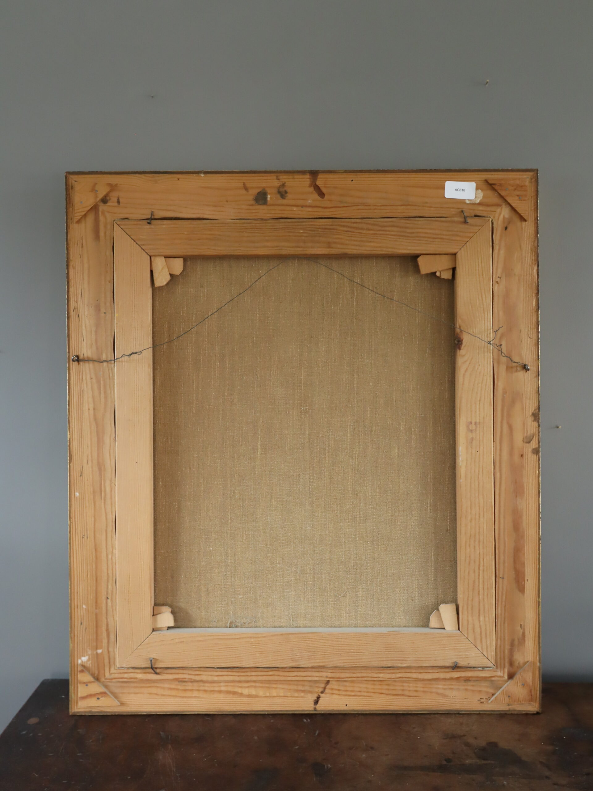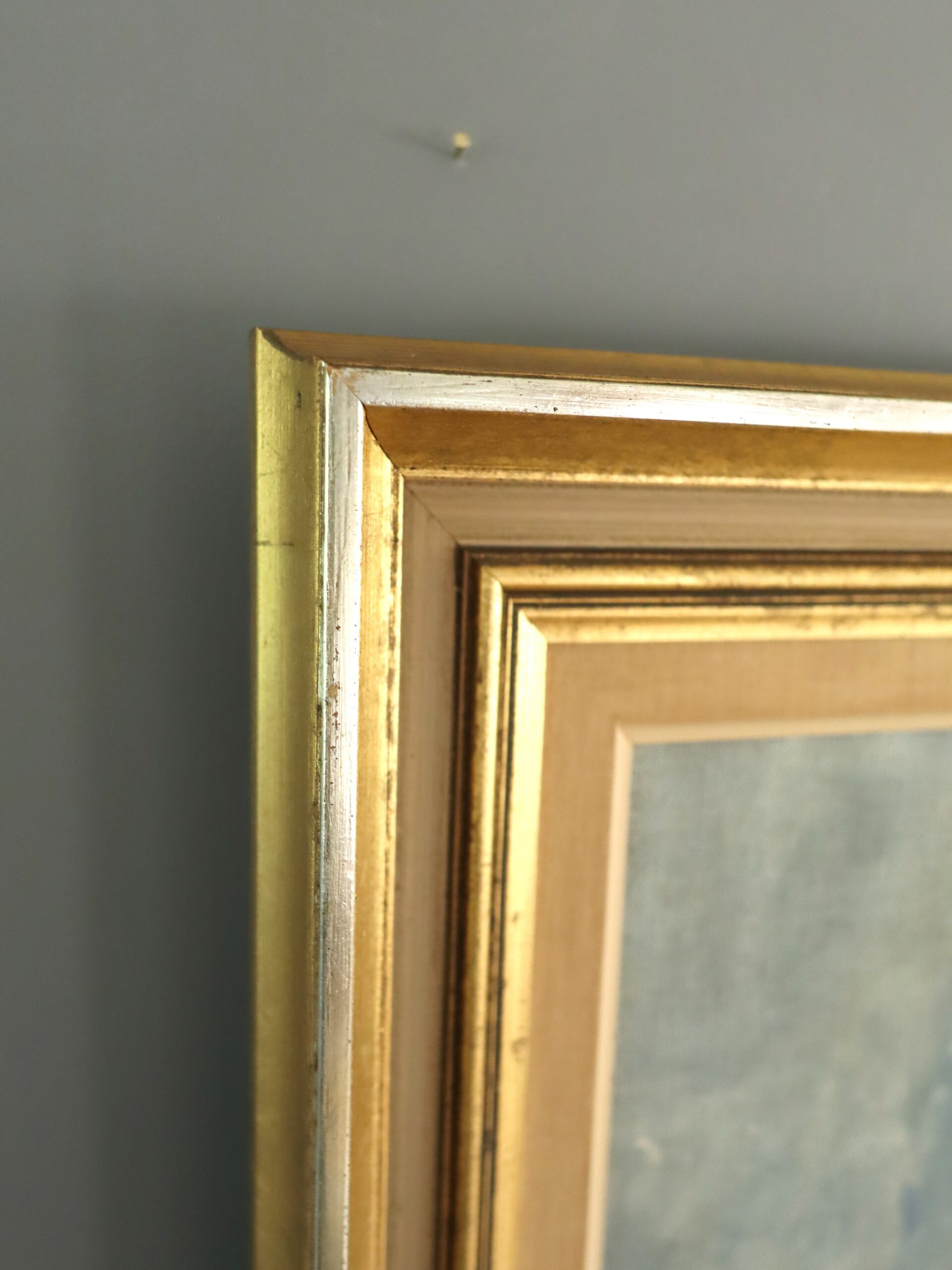 This oil on canvas is presented in very well-suited gilt frame. The painting is in excellent vintage condition, and the frame has some marks.