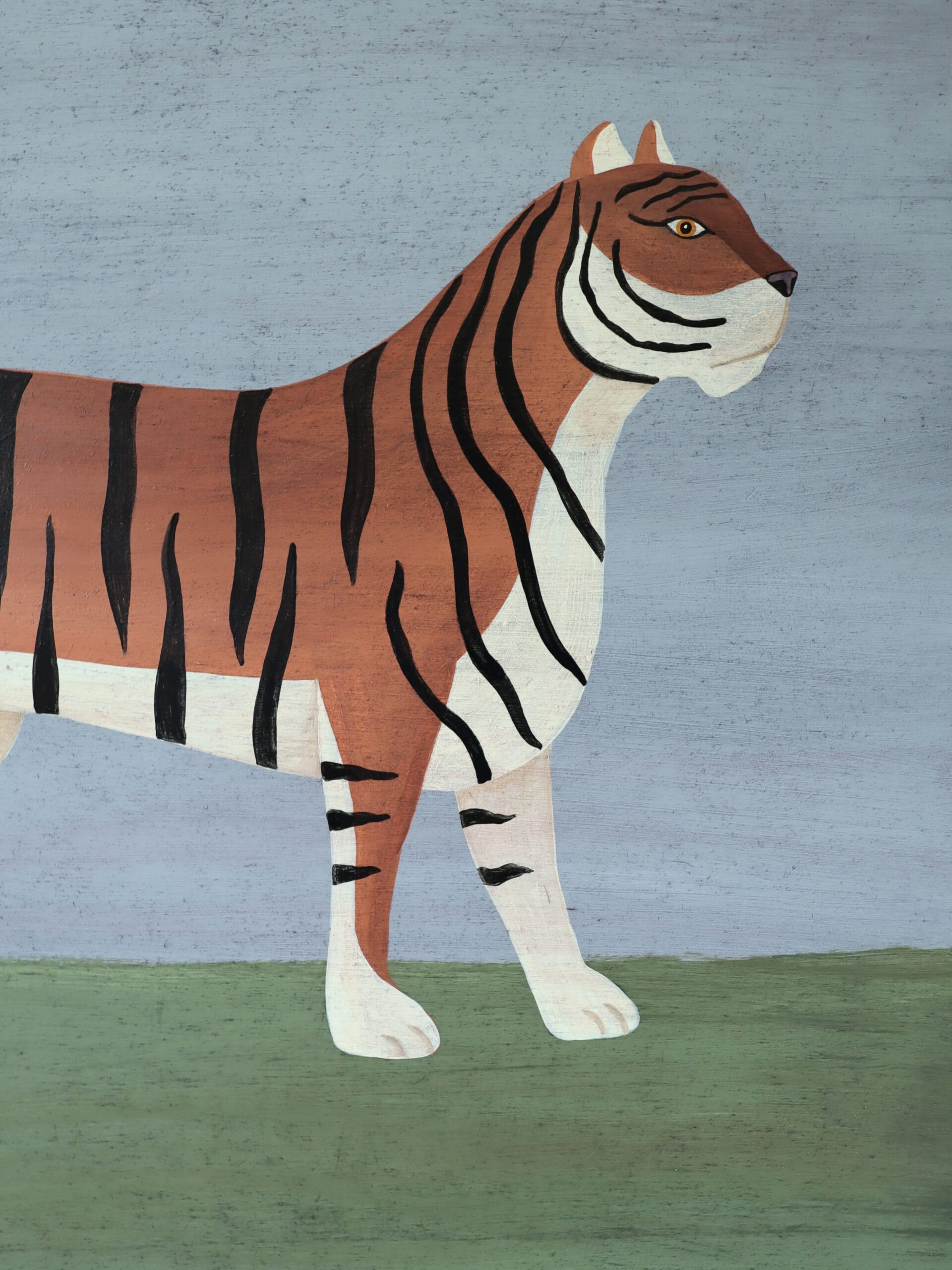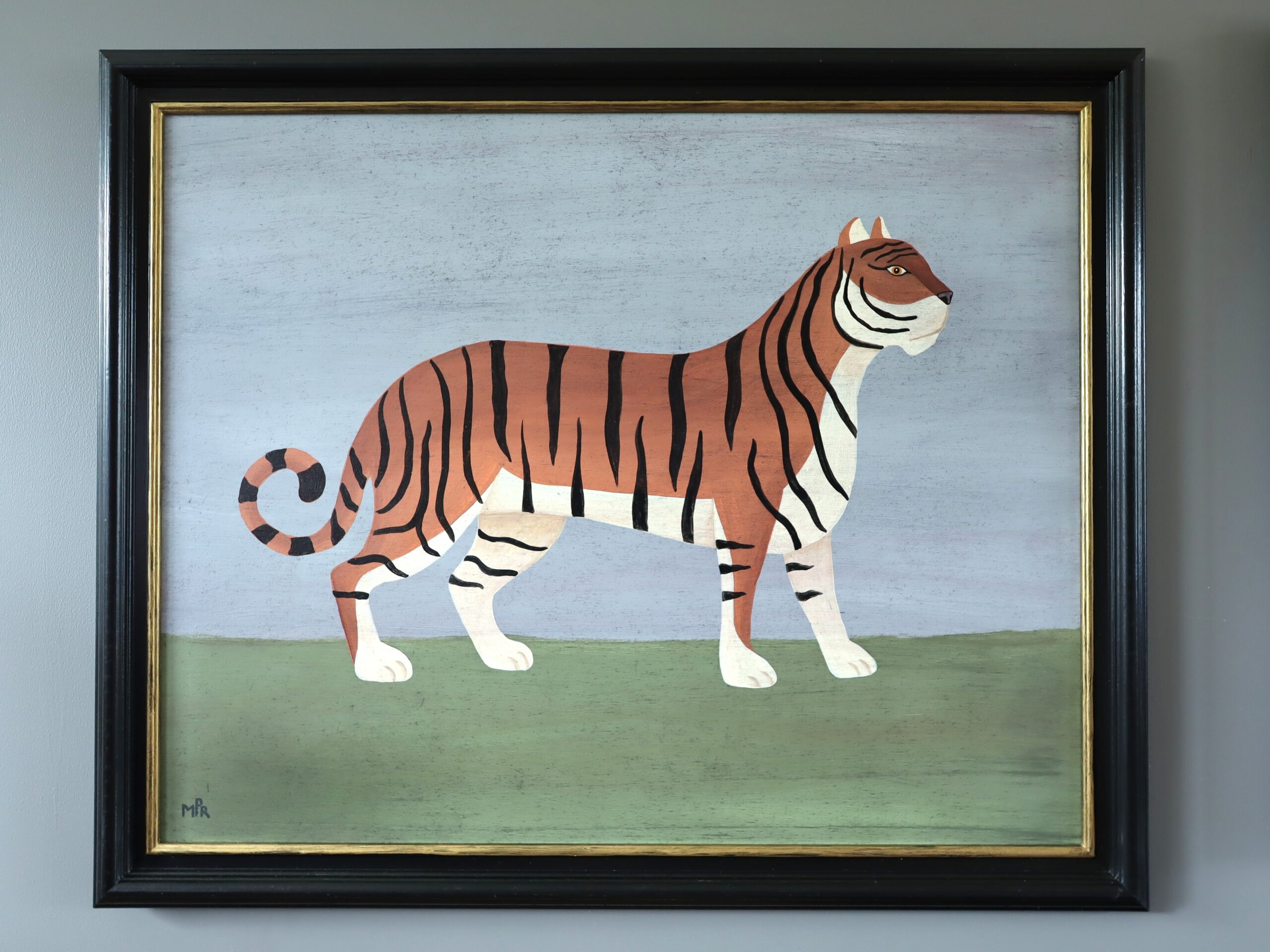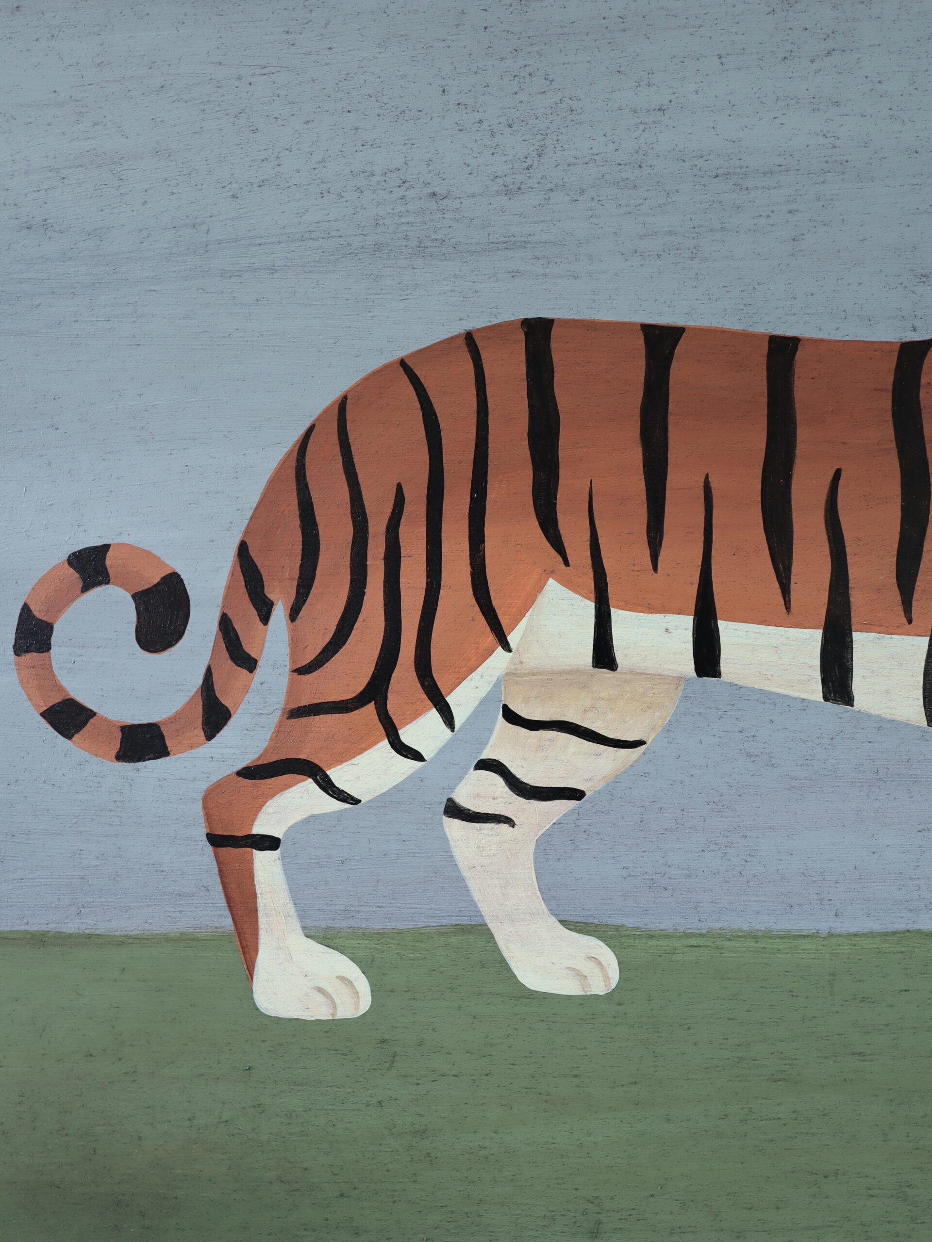 British artist Matt Rix spent his childhood in South Africa and now lives with his family on a small holding in rural North Wales. His paintings are uncomplicated, modernist representations influenced by primitive and naïve folk art from times past. Many of the subjects Rix paints are inspired by the animals he sees from day to day. Rix uses recycled materials including discarded paints, boards, frames and backing paper. Much of his work is therefore produced using waste materials resulting in sustainable paintings that evoke a time-worn, nostalgic essence.