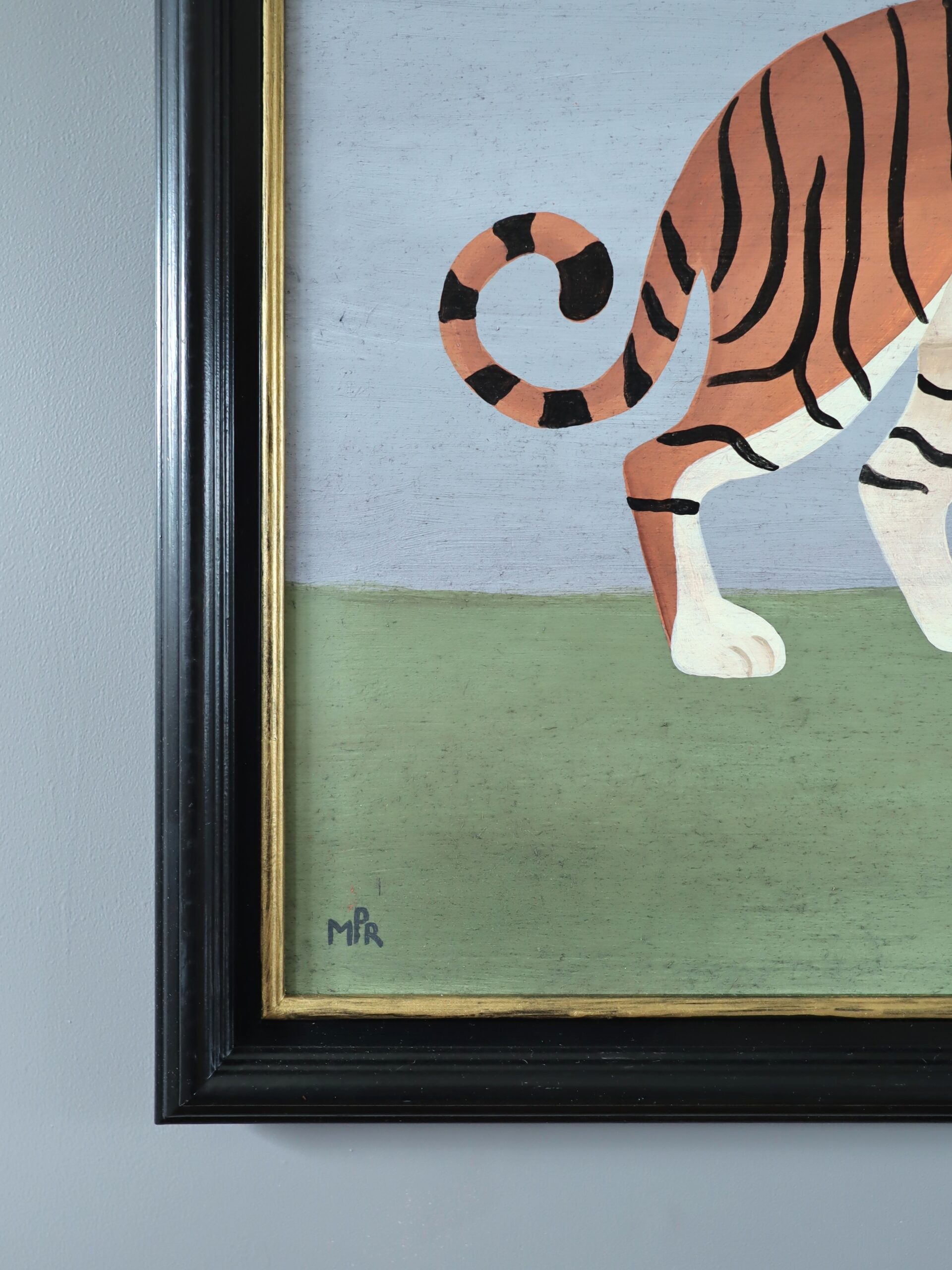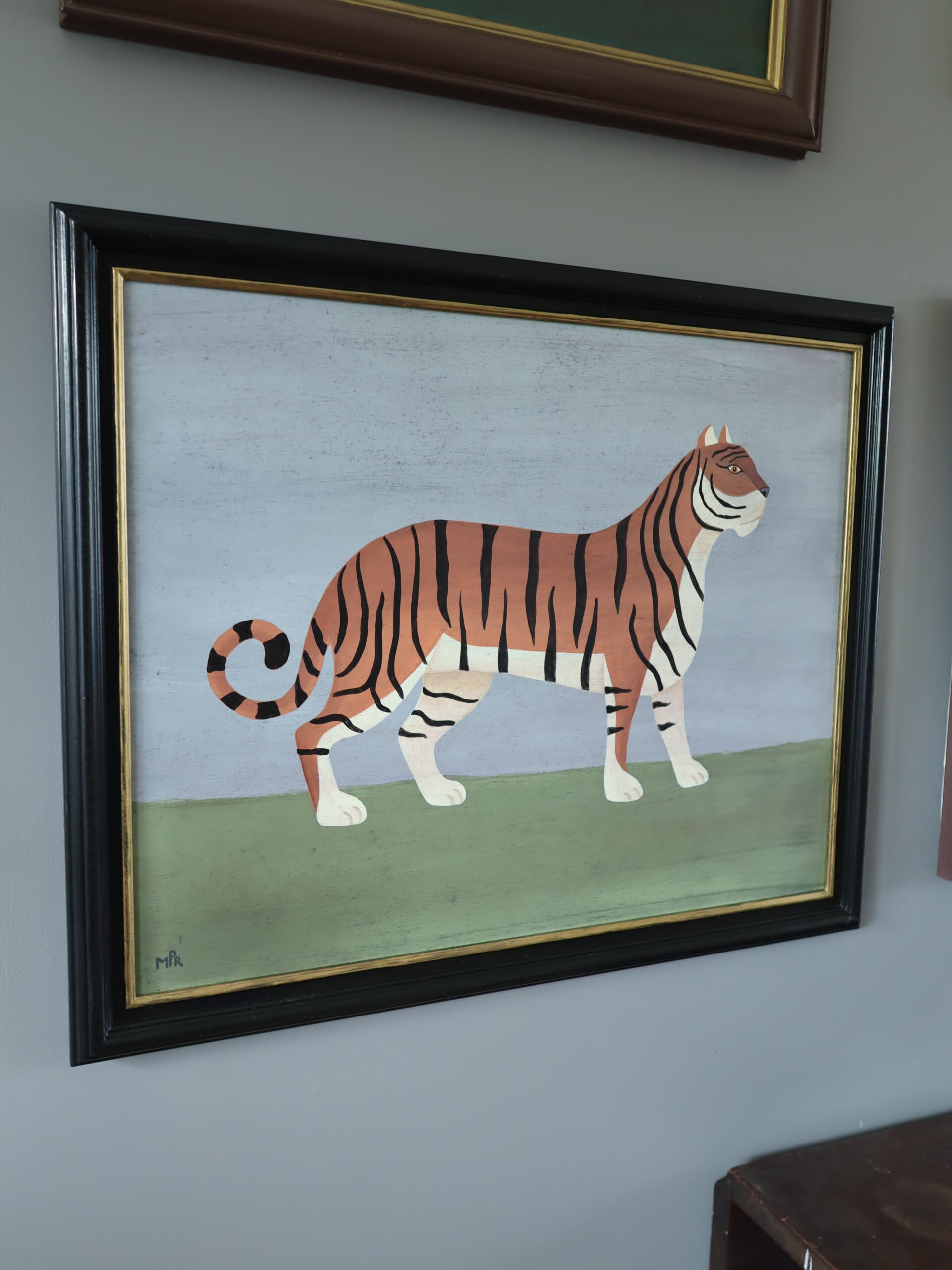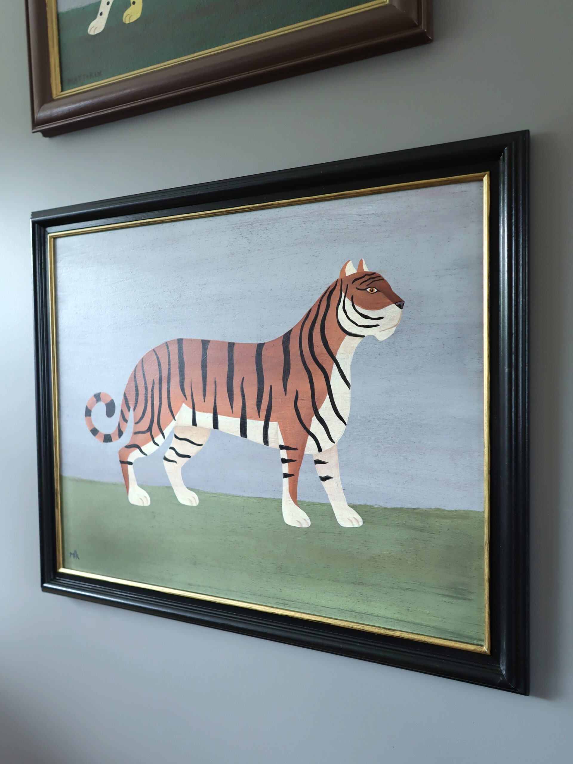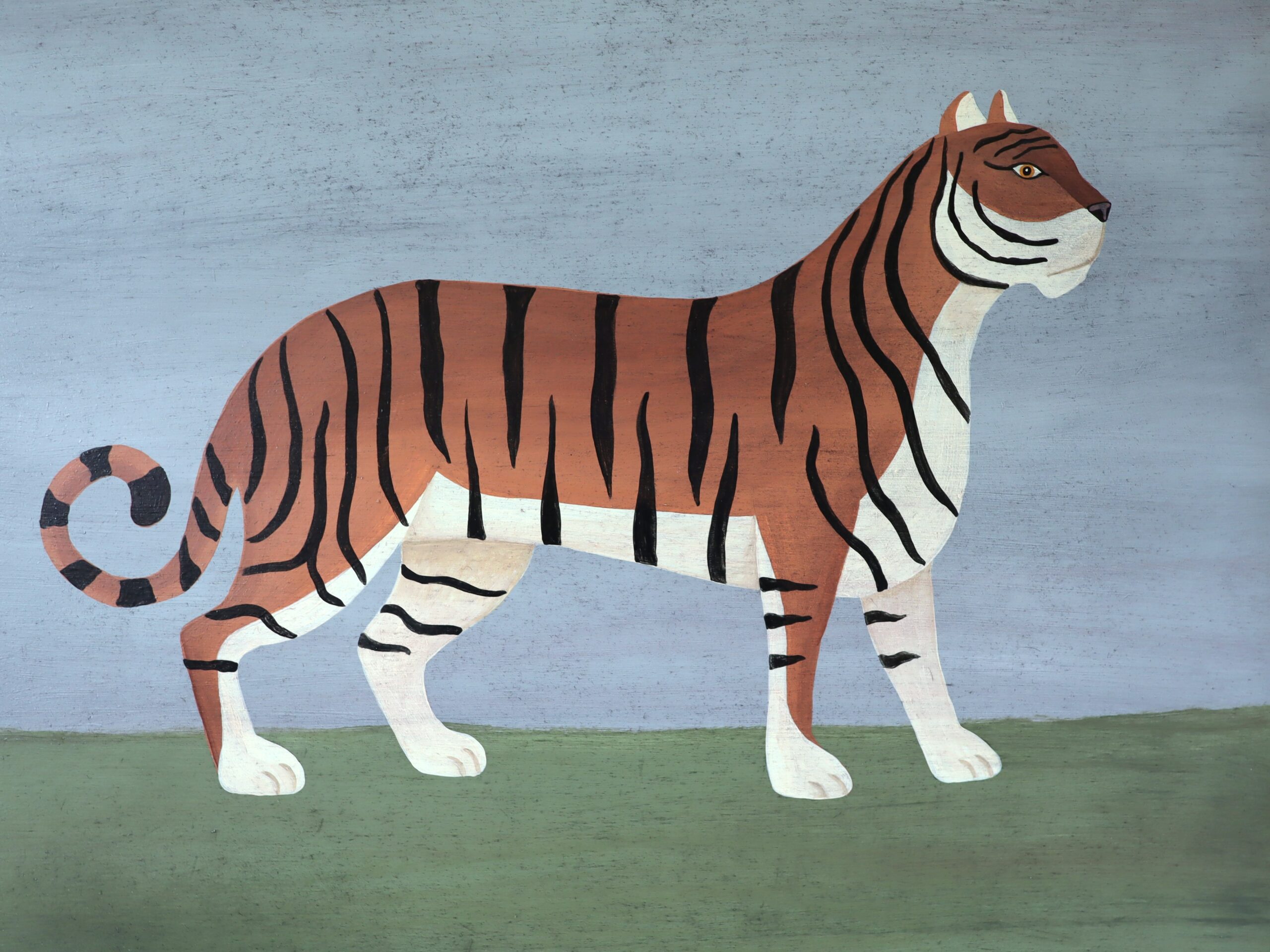 British artist Matt Rix spent his childhood in South Africa and now lives with his family on a small holding in rural North Wales. His paintings are uncomplicated, modernist representations influenced by primitive and naïve folk art from times past. Many of the subjects Rix paints are inspired by the animals he sees from day to day. Rix uses recycled materials including discarded paints, boards, frames and backing paper. Much of his work is therefore produced using waste materials resulting in sustainable paintings that evoke a time-worn, nostalgic essence.