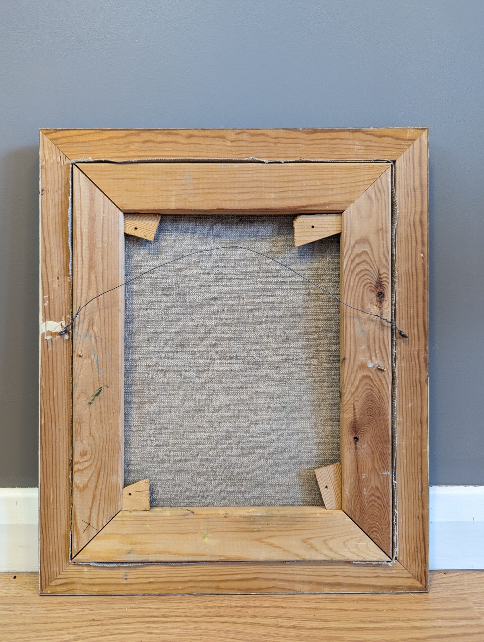 The painting is housed in a very well suited frame with a linen lined border as well as an inner gilt border which illuminates the painting wonderfully. The painting is in very good vintage condition. The frame has some minor age wear.