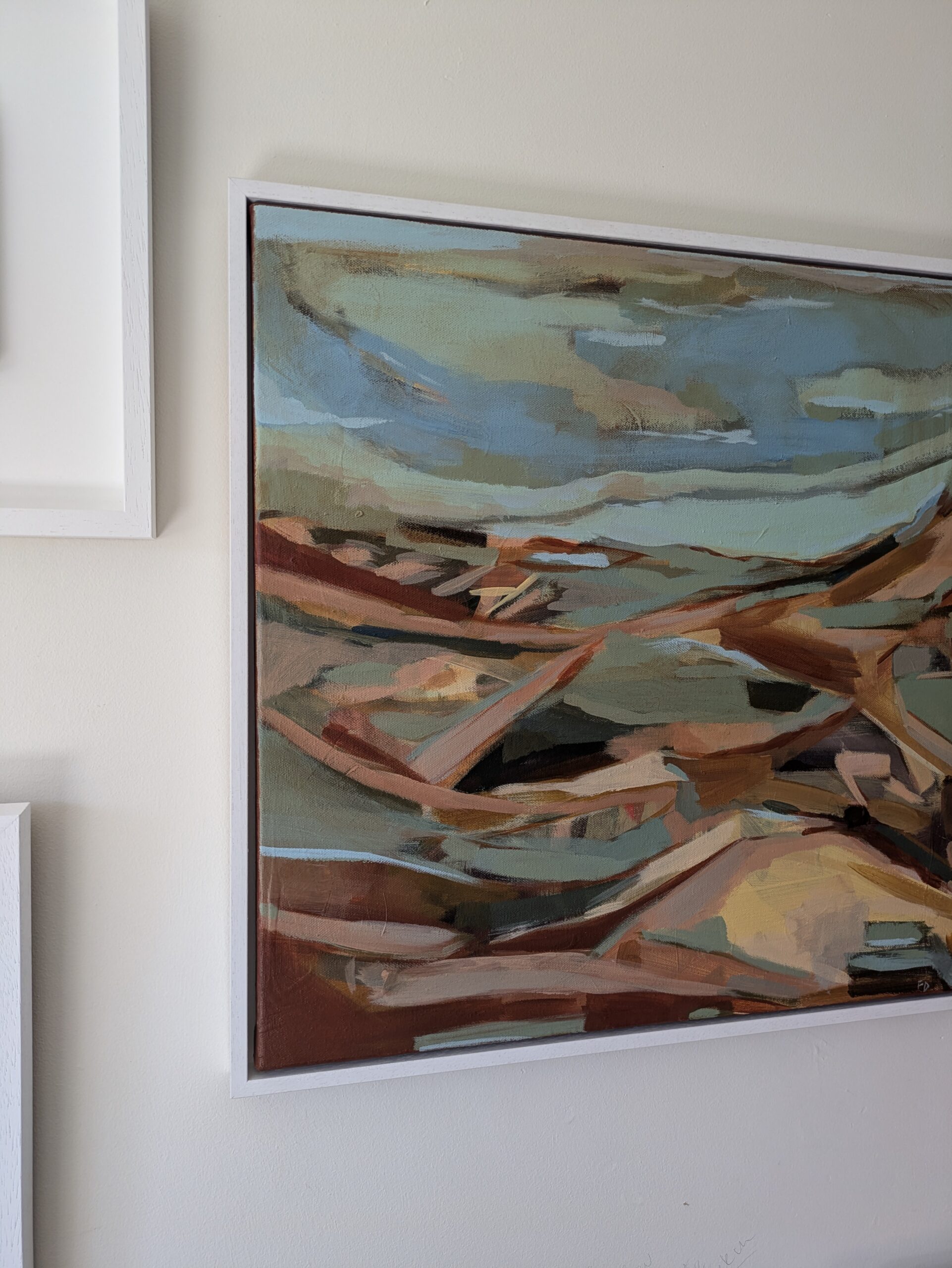 Frances Daws is a British Artist working in the Southwest of England. Primarily a painter she also works within printmaking. Having lived by the English coastline and now residing within the countryside her work is often formed by ‘colour journeys’ a form of mapping the landscape through the emotive language of colour.